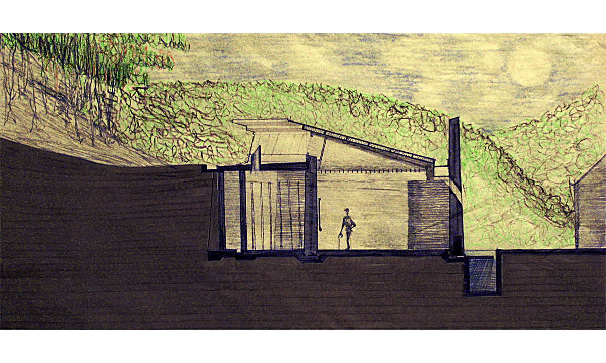 Graduate Project, Illaroo NSW AUT- The focus for this group project, as part of Glenn Murcutt’s 2009 Master Class, was on the process and integrating the new gallery into the site and with the major existing buildings including Murcutt’s award winning residence.