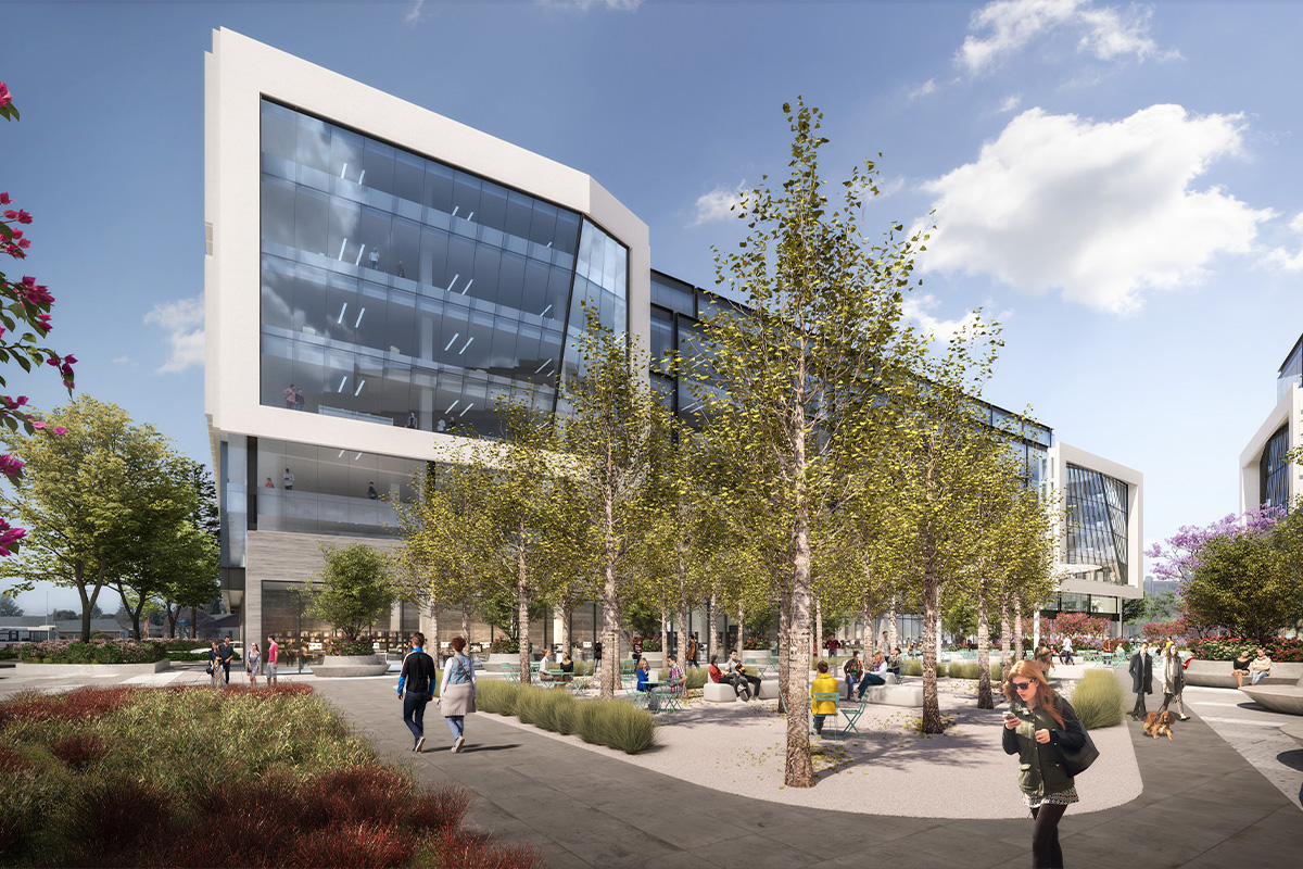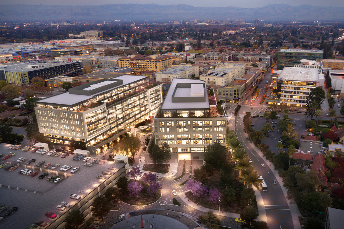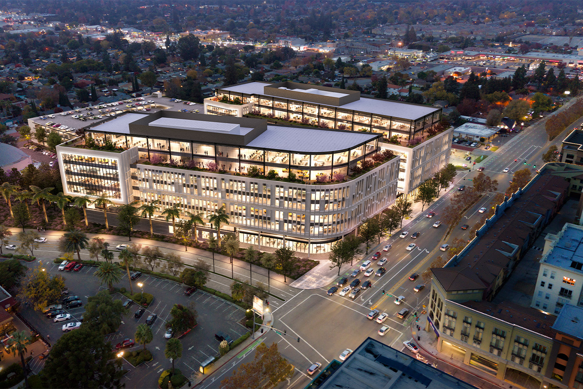 Santana West, San Jose CA – Developed as the first phase of a business campus to a pre-existing successful multi-use community in San Jose. The office building is designed to both stand on its own and fit with the later phased building to be a high profile jewel for potential tenants in the San Jose market.