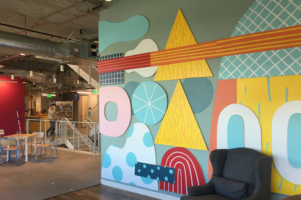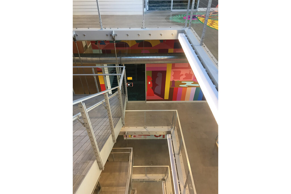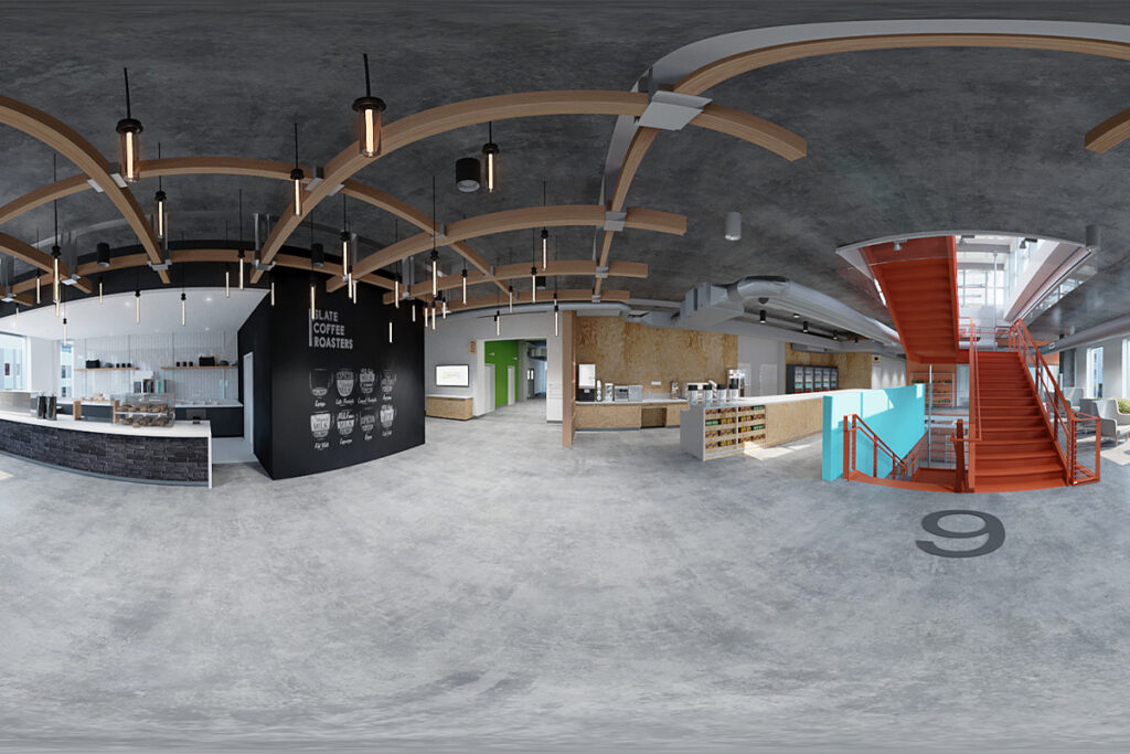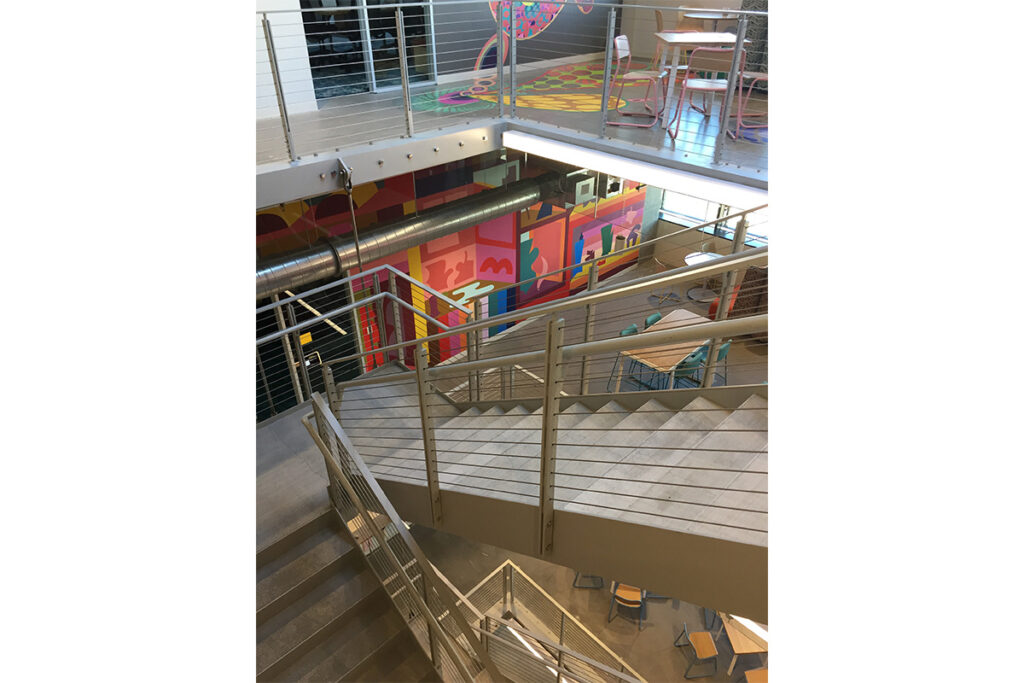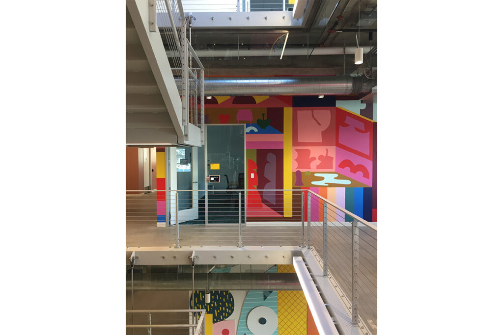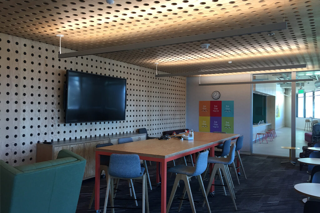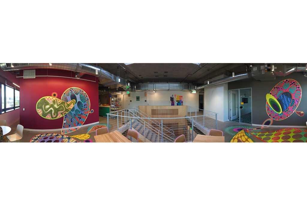 Tech Client Westlake Seattle, WA – The client’s user team wanted to have the feel of a campus within the building and bring a feeling of a “macguyvering” life and social media feel to the workplace.