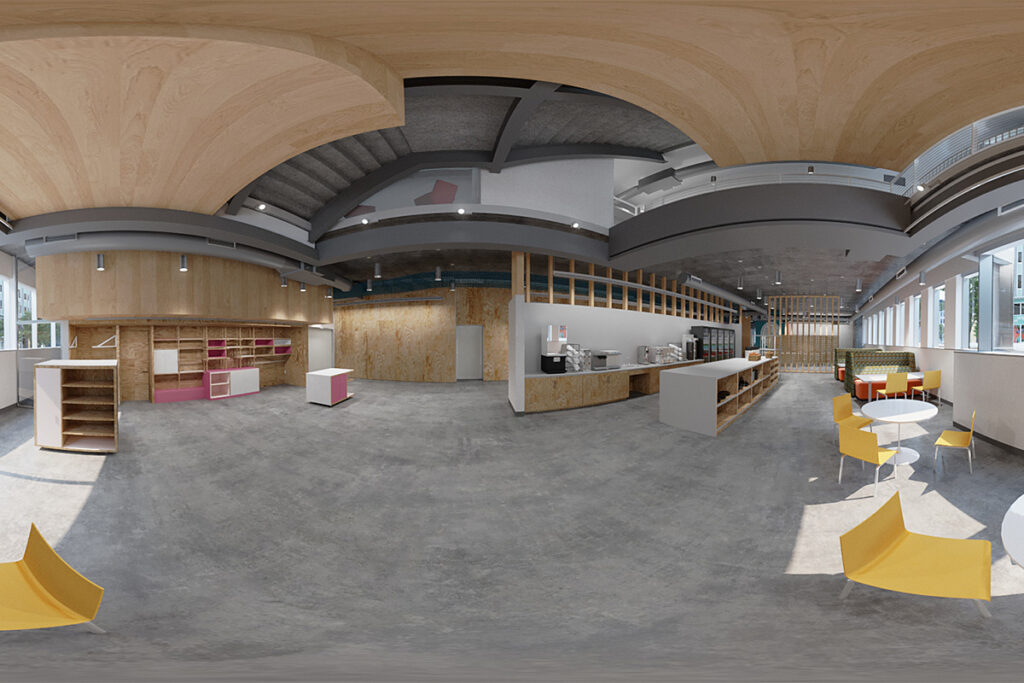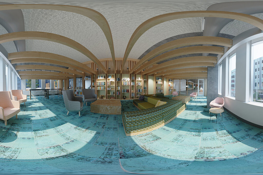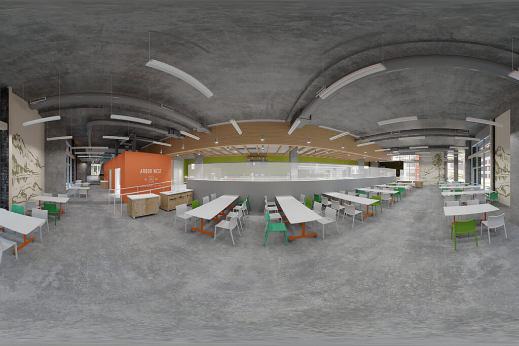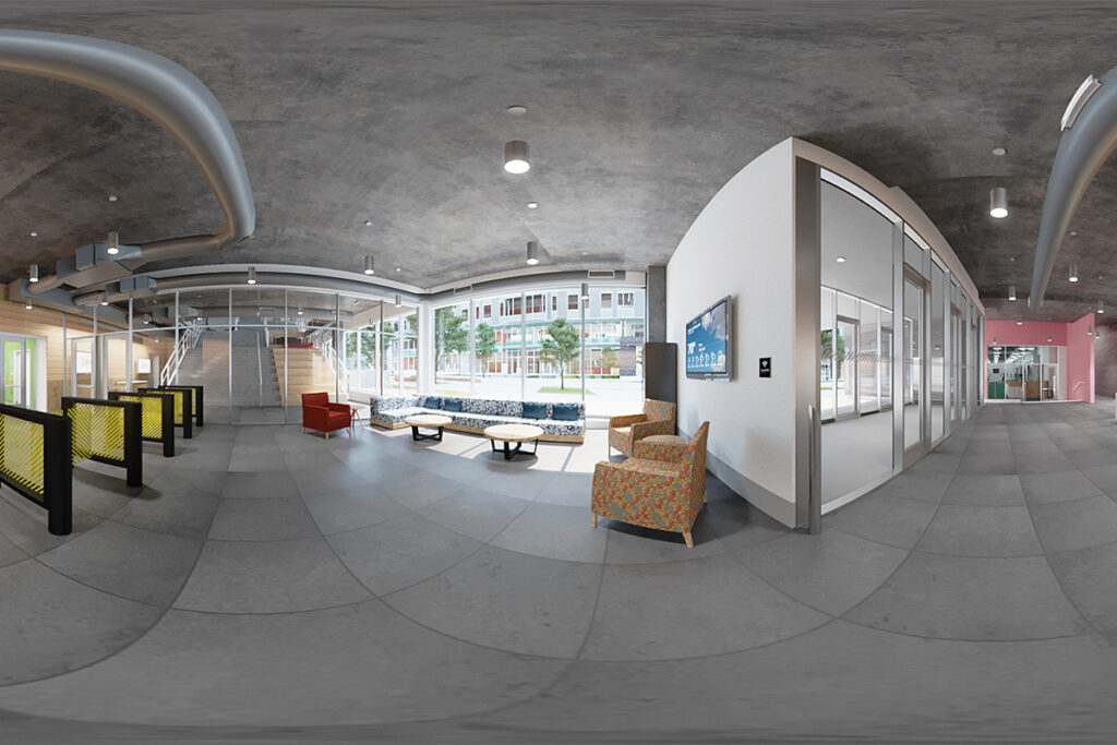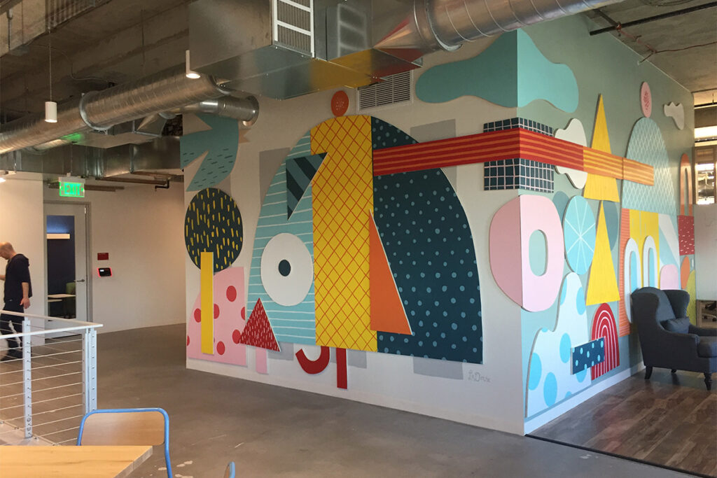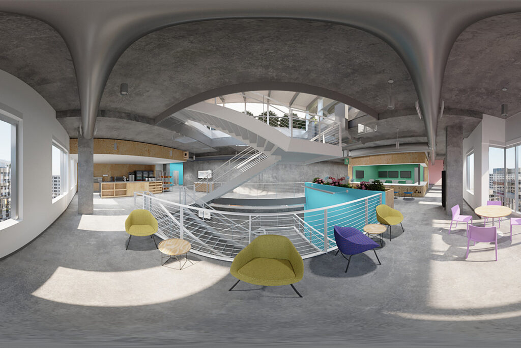 Tech Client Westlake Seattle, WA – The client’s user team wanted to have the feel of a campus within the building and bring a feeling of a “macguyvering” life and social media feel to the workplace.